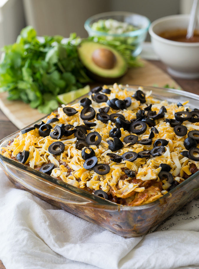 No baked chicken for my kiddos. Line up the cut side of the tortillas with the edges of the casserole dish like this This chicken enchilada casserole is super easy variation on the classic mexican enchilada recipe, where you'll layer your tortillas instead of rolling them around the filling. This was a total hit on my dinner table. Add in my favorite creamy avocado sauce and you've got a winning dinner in under 30 minutes!